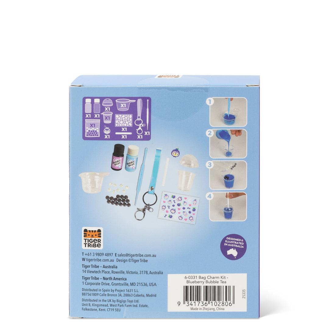 Working with the mini-sized components included in Bag Charm Kit - Blueberry Bubble Tea, and following the simple step-by-step visual instructions, kids will adore the creative process of miniature crafting – resulting in a super cute keepsake at the end!