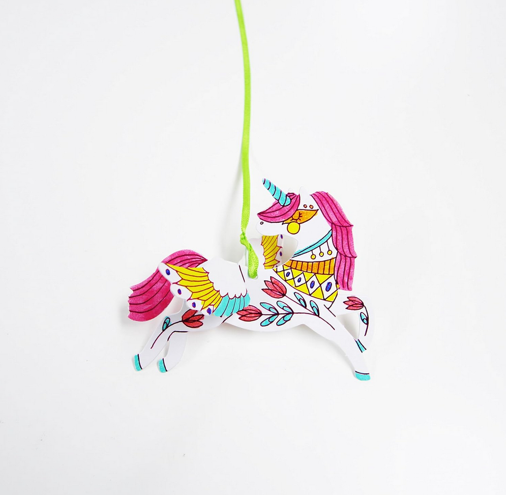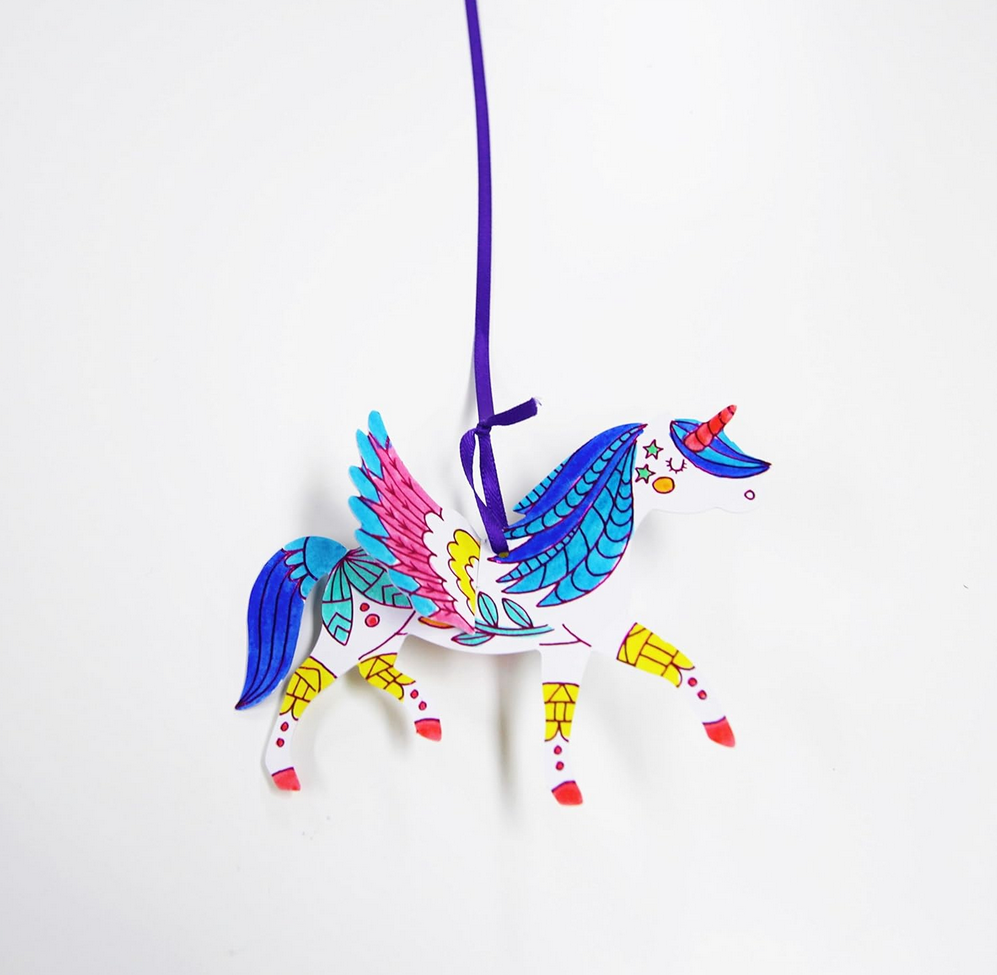 Each press-out design is intricately decorated with pink foil and perfect for all ages to decorate. Featuring 20 unique designs, the press-out pieces can be slotted together to create magical three-dimensional hanging ornaments or threaded together to make a super cute garland. From flying unicorns and shooting stars to fluffy clouds and rainbows, these gorgeous press-out pieces look elegant in white and pink, but even better as a decorated collection of flying unicorns.