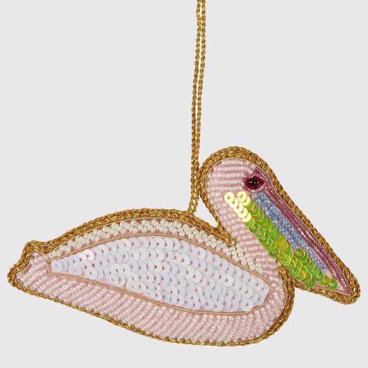 Pelican L 8cm W 13cm H 1.5cm Pink Sequins Beads Zari