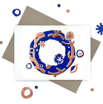 Christmas Wreath in Blue & Copper