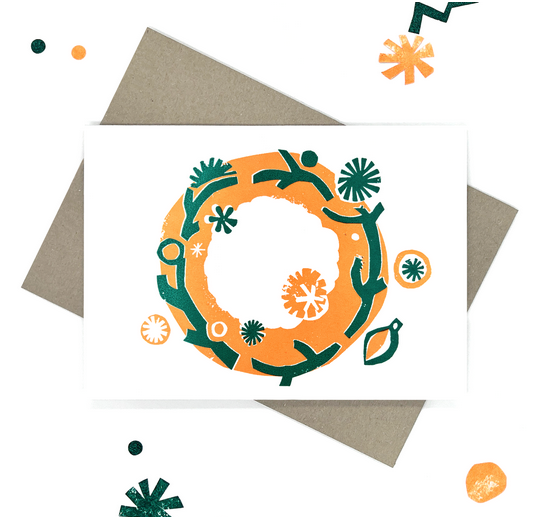 Christmas Wreath in Green & Neon Orange