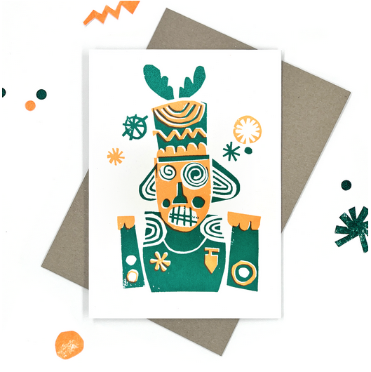 Christmas Nutcracker in Green and Neon Orange