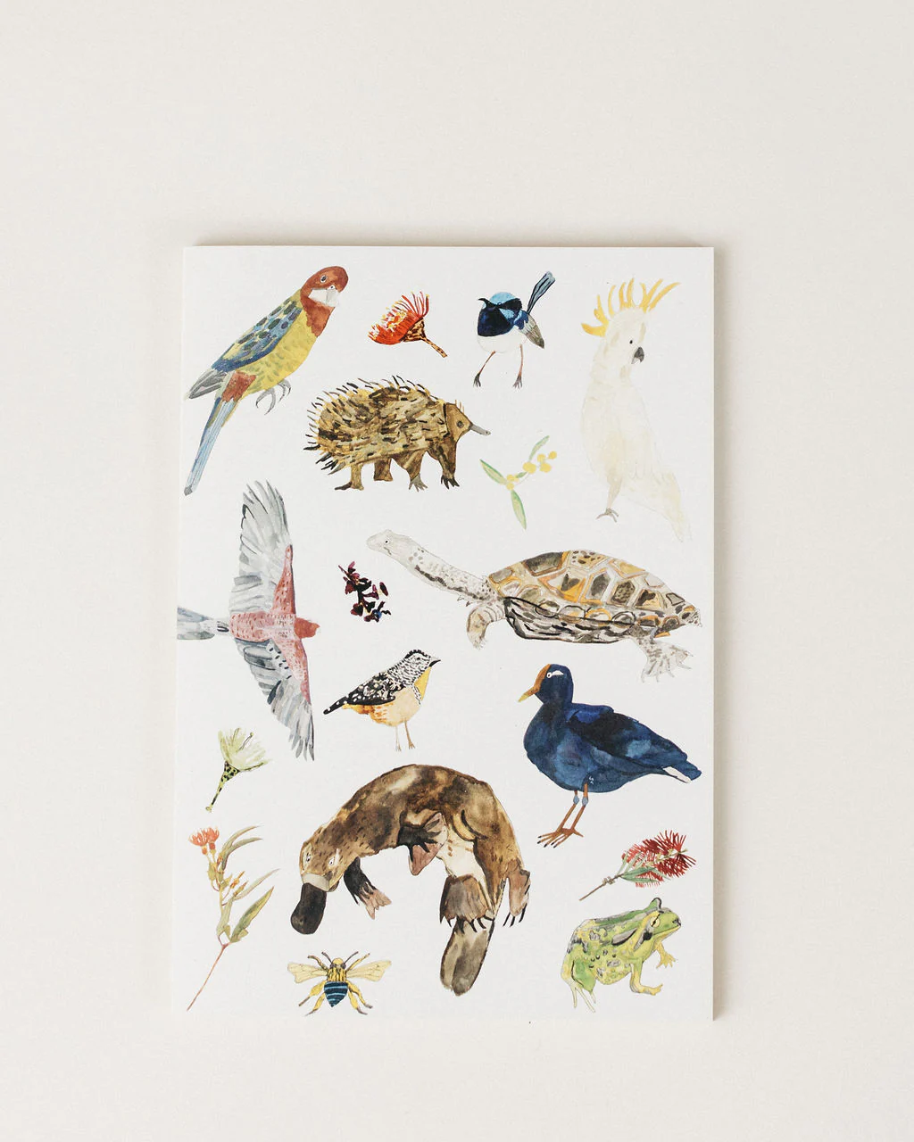 Created in Melbourne from an original watercolour painting of some of Victoria's glorious Bird Life. Printed in Castlemaine on post -consumer 100% recycled paper using vegetable inks.