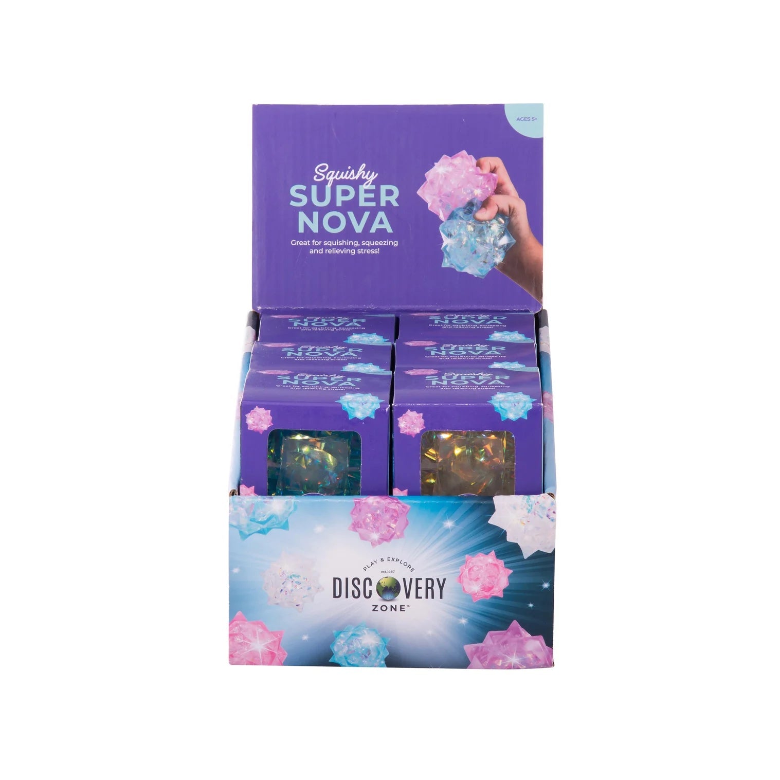 Squeeze the supernova and blast your stress away. Great for squeezing, squishing, and relieving stress.