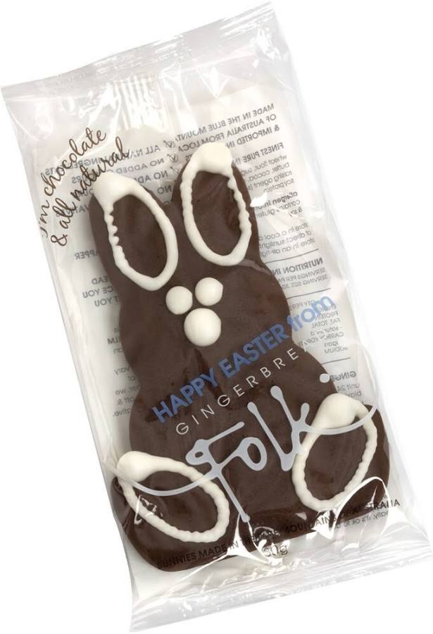 Gingerbread Folk's gluten-free chocolate gingerbread bunny cookie is sure to add a bit of bounce to Easter! Individually packaged in compostable wrappers and are gluten-free, vegan, nut-free and palm-oil free, with absolutely no colours, flavours or preservatives added.