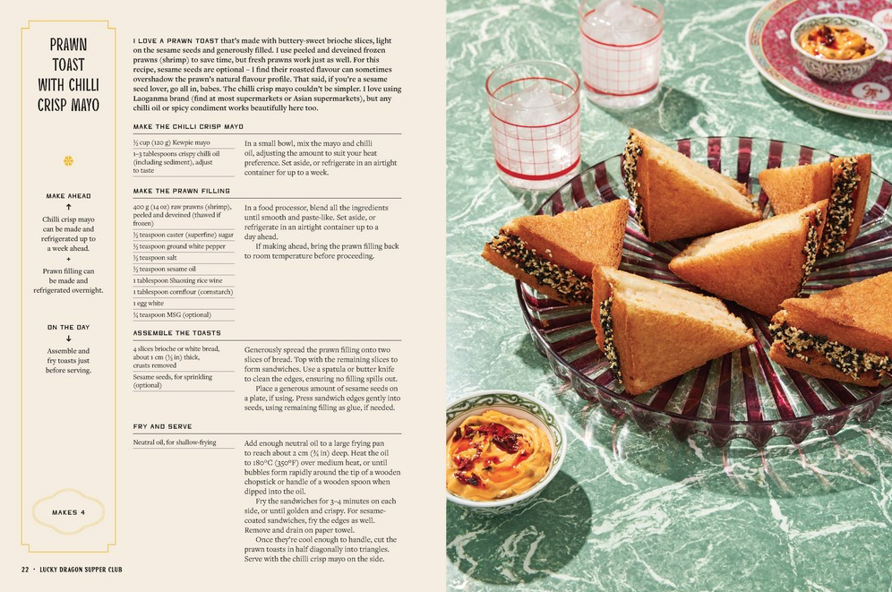 •Bites and cocktails: Prawn toast with chilli crisp mayo, The ultimate stuffed peppers, Cheats umami popcorn, Oolong highball.