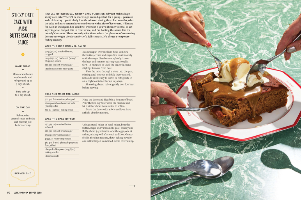 •Something sweet: F*ing good crumble, Sticky date cake with miso butterscotch sauce, Cherry lamington log.