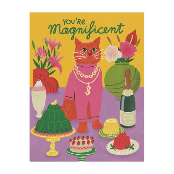 Vevoke's Magnificent Cat Foil Card is created by artist Bodil Jane. Printed with soy inks on 60% tree free recycled paper and stamped with gold foil.