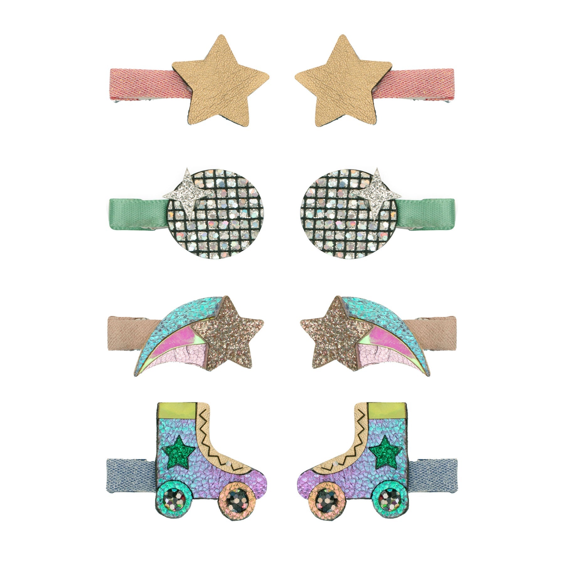 Dinky little disco fans will love to decorate their chosen 'do with this fab pack of mini clips! Disco balls, retro rollerboots, and sparkly stars - all the stuff the cool kids will go crazy for!