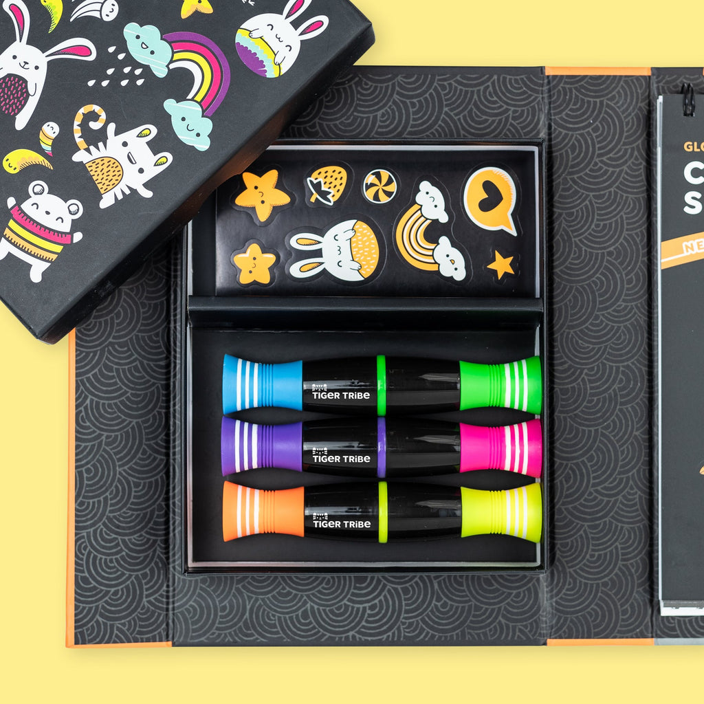 These Neon Colouring Sets are jam-packed with activities, neon-coloured markers and stickers, all designed to keep tigers happy on the go. Everything you need in one self-contained box, with a magnetic flap to keep contents safely stored.