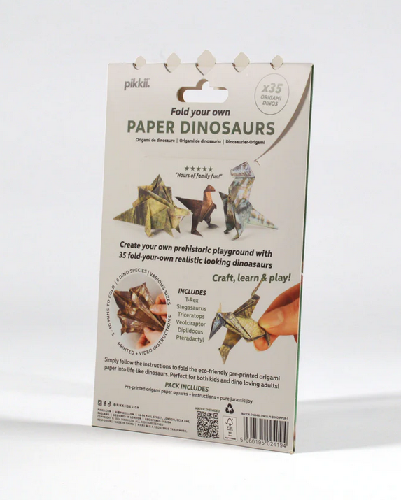 PACK INCLUDES: Origami paper squares (pre-printed front and back) + instructions + pure Jurassic joy!
